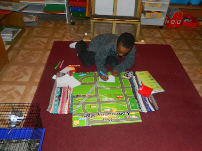Also all three of them had fun making an African Habitat for the animals. The preschoolers enjoyed this work when it was finished too.